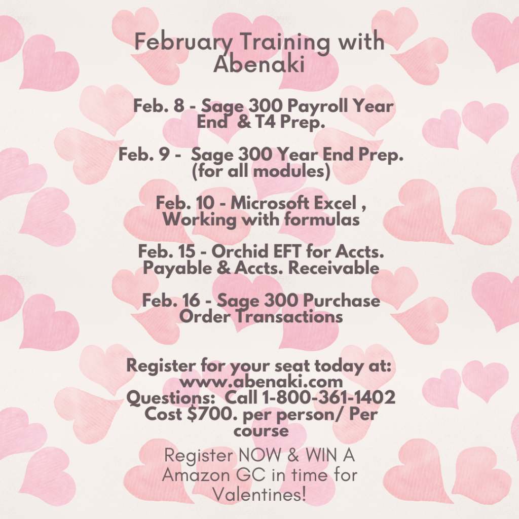 Looking for a Gift for Valentine’s? Amy Young February 8, 2022Microsoft Office, Online Training, Orchid EFT, Sage, Sage 300 ERP, T4 prep., Training